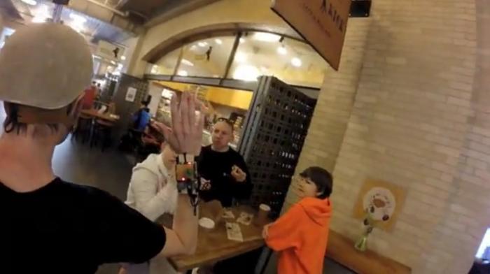Andrew Maxwell-Parish, un inginer mecanic și-a montat o cască cu cameră și a început să împartă bătăi de palmă cu oamenii necunoscuți