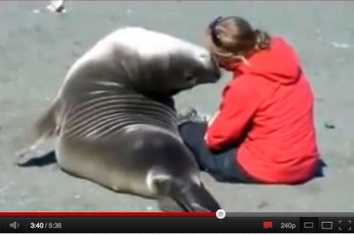 VIDEO! O focă s-a îndrăgostit de o femeie