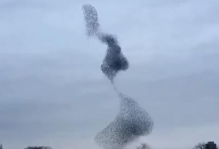 VIDEO! Un dans terifiant: sute de grauri acoperă cerul în formații tulburătoare