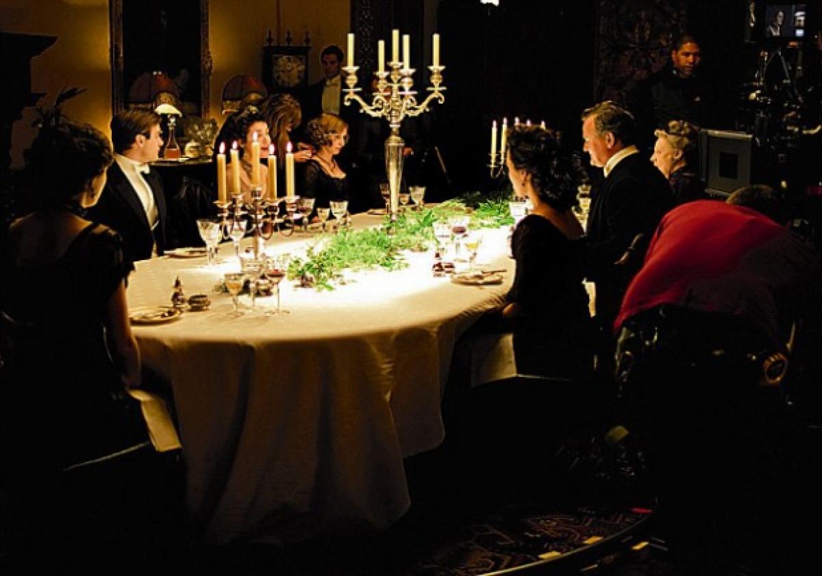 2. O scenă în care familia ia masa poate să dureze doar câteva minute, dar necesită între 10 și 12 ore de filmare. Acest lucru se întâmplă pentru că regizorul filmează cadre cu fiecare actor în parte, adică trei, patru duble de persoană. Dan Stevens povestește că așa a învățat că NU trebuie să mănânce: „Dacă vrei să mănânci ce ai în farfurie, să zicem cinci bucățele de pui, fii pregătit ca până la finalul zilei să fii gustat 70!”.