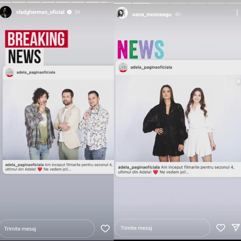 Oana Moșneagu și Vlad Gherman au fost primii care au anunțat prin intermediul rețelelor de socializare că se pregătesc de filmările celui de-al patrulea sezon, asta după ce pagina oficială a serialului Adela a dat vestea ce mare.