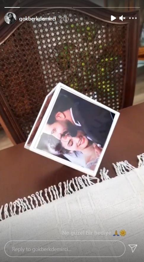 Celebrul cuplu a primit în dar un cub extrem de interesant, care se rotește și pe fiecare latură este o fotografie cu ei. Actorul Gokberg Demirici nu s-a abținut si a arătat imaginile urmăritorilor săi, care au fost cu siguranță încântați să vadă ce cadouri au primit cei doi.