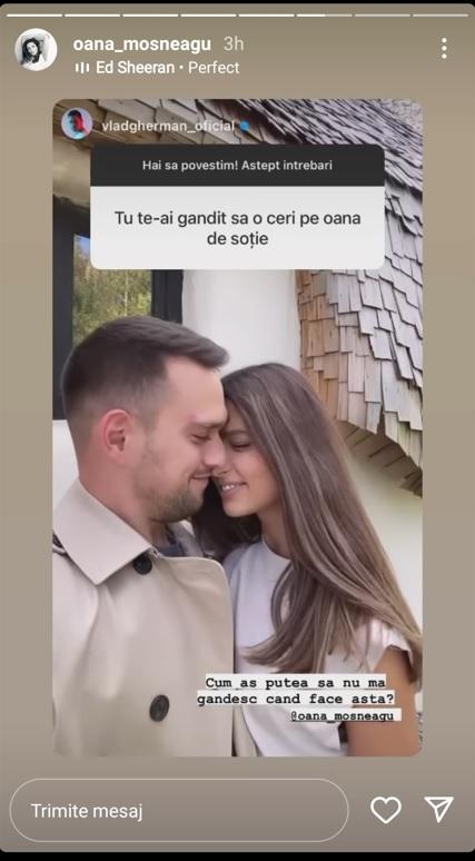 Zilele trecute cei doi au primit întrebări de la fani pe Instagram, iar una dintre el a fost legată de o posibilă căsătorie, iar Vlad nu a ezitat să ofere răspunsul! Un fan l-a întrebat dacă are de gând să o ceară de soție pe actrița Oana Moșneagu, iar răspunsul lui nu a întârziat să apară.
