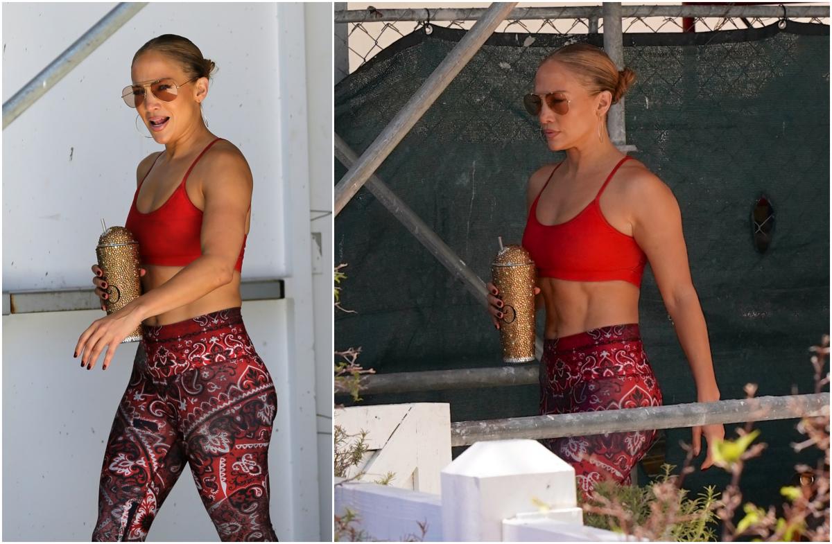 De această dată, JLo a fost pozată de paparazzi într-o zi obișnuită când se plimba. Aceasta, îmbrăcată într-o ținută sport, a făcut spectacol cu formele sale, dar mai ales cu abdomenul bine lucrat la sală.