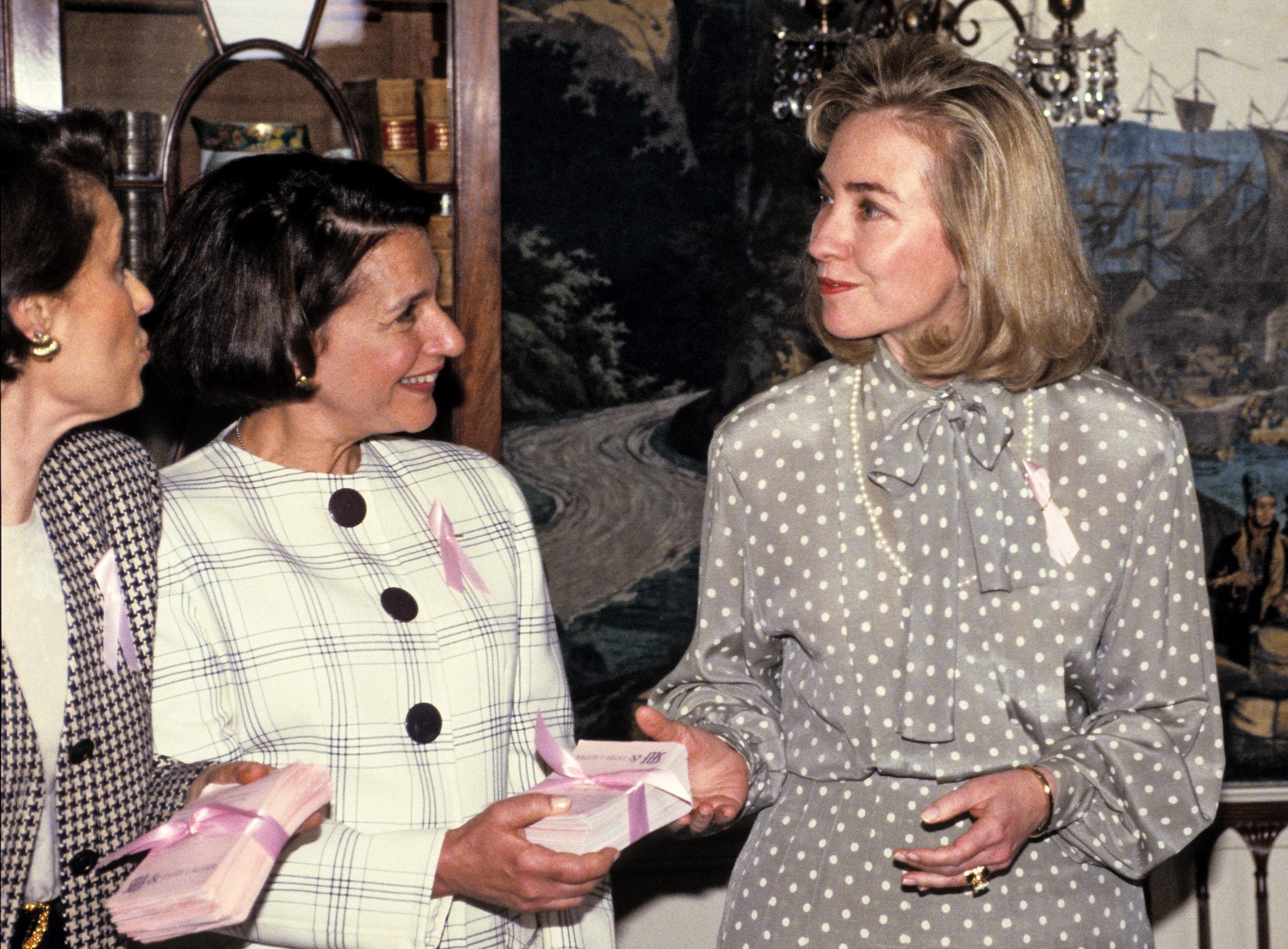 Cele două împărtășeau, pe atunci, preferința pentru blazere structurate și accesorii discrete. Desigur, deschiderea lui Hillary Clinton față de politică a reprezentat o oportunitate de a aborda și alte tendințe: cămăși cu mâneci largi din mătase, pulovere și cardigane supradimensionate, helănci, sacouri cu imprimeu tartan, broșe.