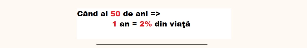 La 30 de ani, o săptămână reprezintă, evident, o parte insignifiantă din viaţă, iar pentru cineva de 50 de ani, 1 an este doar 2% din viaţă.