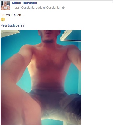 Ultima dintre postări este scurtă, dar plină de sens, aproape filosofică: "I`m your bitch!", în traducere, "sunt c...a ta!"