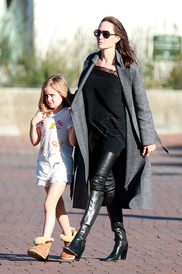 Îmbrăcată în negru şi gri, chipul actriţei părea invadat de tristeţe şi extenuare, semn că tot procesul divorţului şi-a pus amprenta serios asupra stării sale fizice şi spirituale. Deşi a susţinut că este convinsă şi împăcată cu decizia divorţului, starea ei pare să o contrazică. Anglina Jolie nu a găsit puterea de a mai zâmbi nici când a văzut că este fotografiată şi imaginile vor deveni publice.