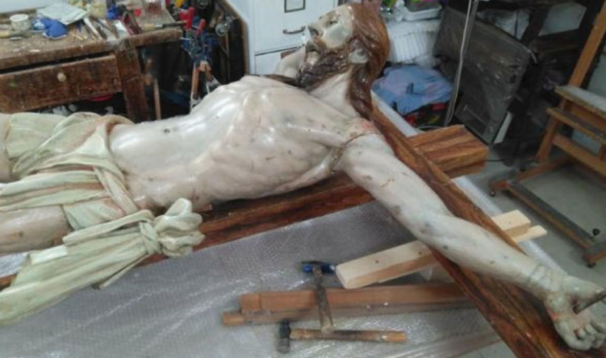 Au vrut să restaureze o sculptură a lui Iisus Hristos din secolul al XVIII - lea, dar au găsit ascuns în interior un pergament ce le-a dat fiori
