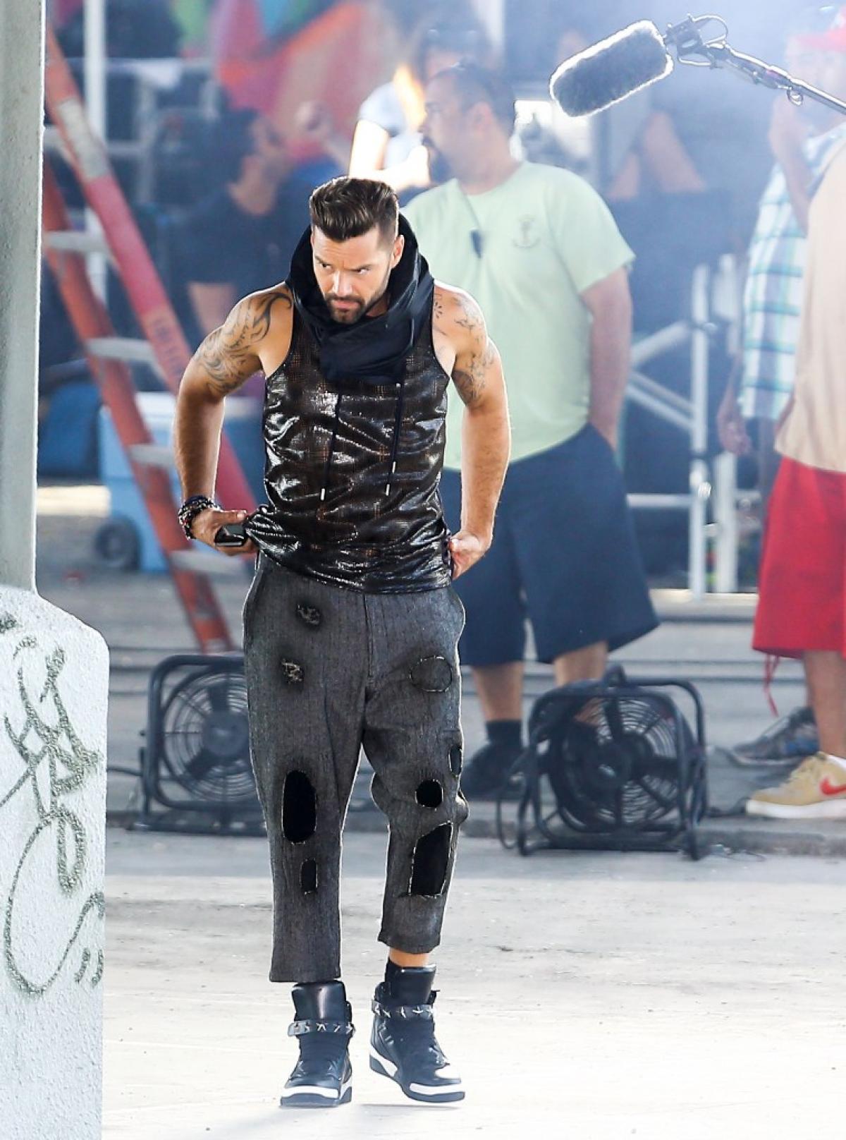 Tăticul unor gemeni, Matteo și Valentino, Ricky nu a renunțat la cariera muzicală. Zilele trecute, bărbatul cu cele mai tari mișcări din șold a fost surprins la filmări în Miami purtând haine ce îi lăsau la vedere fizicul de invidiat. Maioul cu aspect din piele de crocodil, pantalonii rupți, eșarfa și ghetele sport îi stăteau de minune starului de 42 de ani.