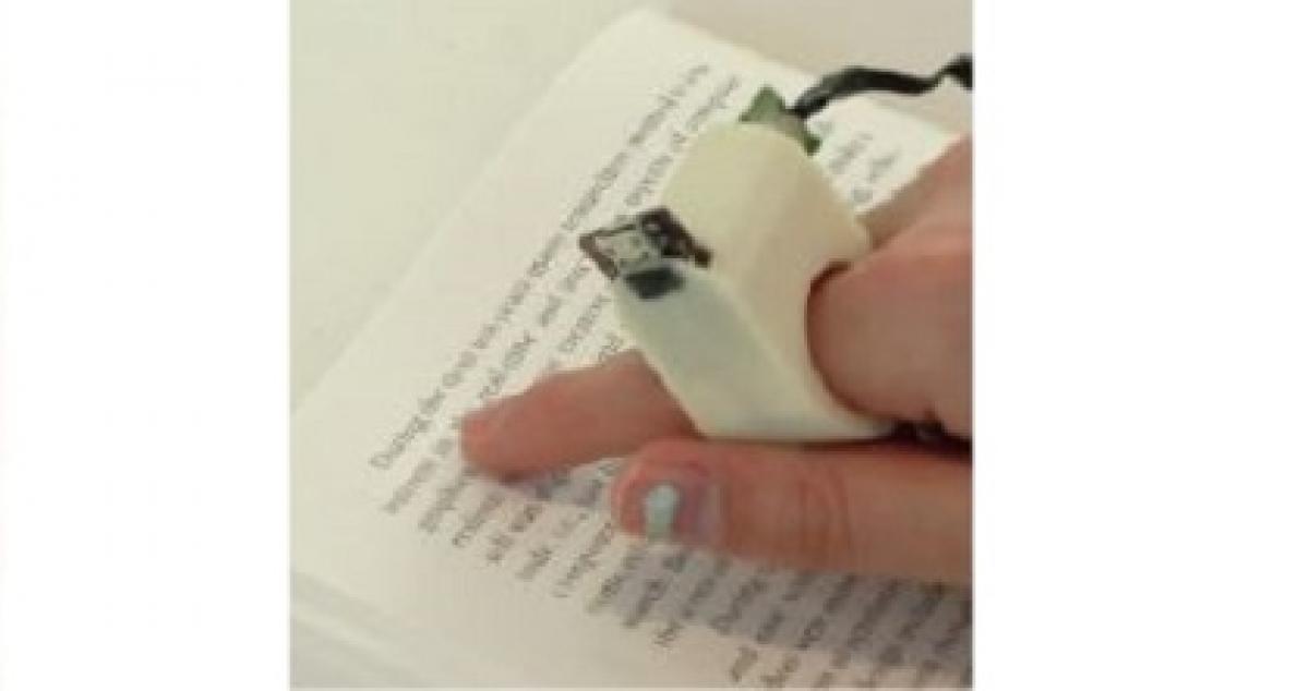 Produs de o imprimantă 3D, inelul se poartă pe degetul arătător pentru a scana textul cu ajutorul unei mici camere video inserate. Apoi, o voce artificială citește cuvintele cu voce tare, traducând rapid cărți, meniuri de la restaurante și alte texte de care au nevoie pentru a trăi.
