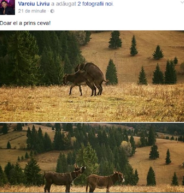 Reacţia lui a fost promptă, dar subliminală: a postat o fotografie a unor măgari în tandreţuri, cu mesajul "Doar el a prins ceva"! Imediat, fanii au reacţionat şi l-au încurjat să o "prindă" din nou pe Adelina, care acum este singura.
