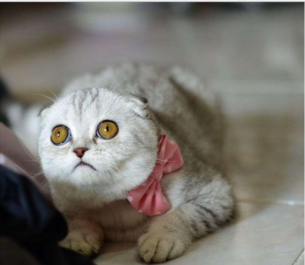 Motanul Încălțat din Shrek nu mai are niciun efect asupra emoțiilor noastre atunci când vedem pisica de mai sus. O scurtă caracterizare: ochii mari, blânzi, urechile mici, date pe spate, tigrată cu fundiță roz cu buline la gât.