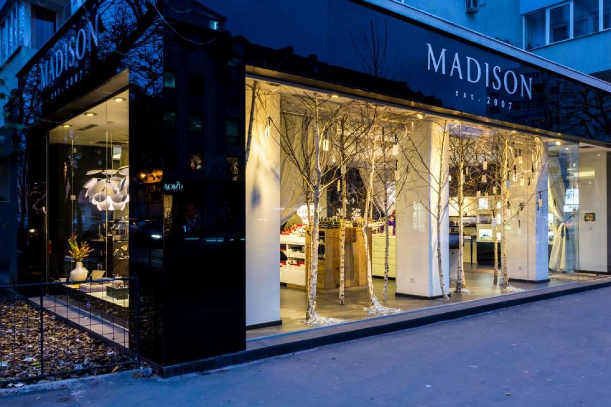 Astfel, în buna zi de 16 noiembrie, am decis să scriem povestea de Crăciun și, prin vitrinele fermecate, să oferim orașului și trecătorilor o feerie de iarnă. Magazinul nostru este acum un crâng de mesteceni. Nu am pus brazi, pentru că ar fi fost prea previzibil – și se știe: la MADISON absolute beauty totul e aparte; n-am mers și nu mergem niciodată pe un drum bătătorit. Mizăm pe premiere. Ne place să ne lăsăm noi primele urme în zăpadă.
