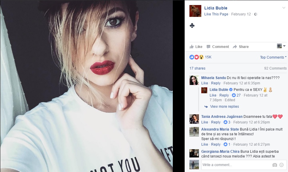 "De ce nu îți faci operație la nas?" Reacția Lidiei Buble este FABULOASĂ. Le-a închis gura cârcotașilor cu o replică GENIALĂ
