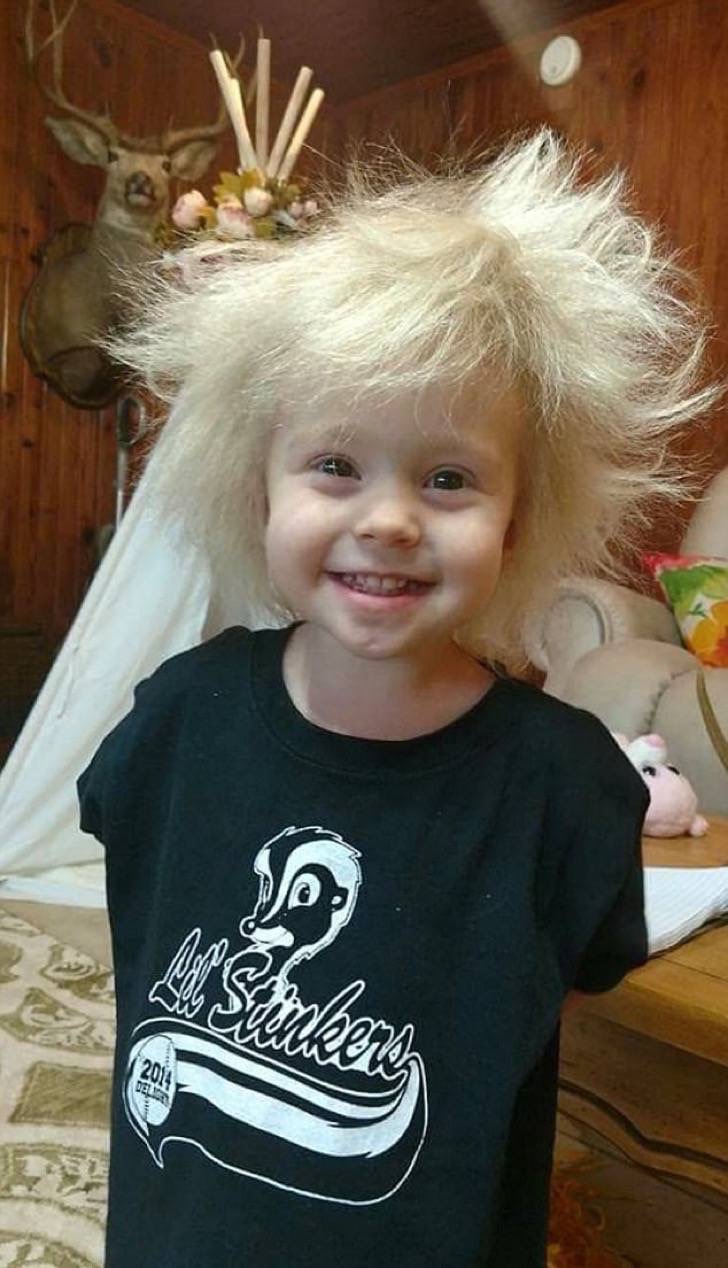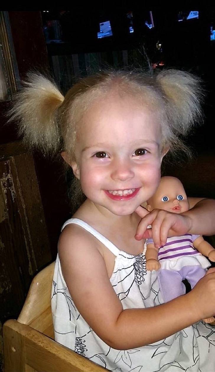 Așa a descoperit că fiica ei suferea de o boală genetică extrem de rară, denumită Sindromul părului de nepieptănat. Testele arată că trei gene sunt vinavate de această boală, care se poate manifesta la copii între trei luni și 12 ani.