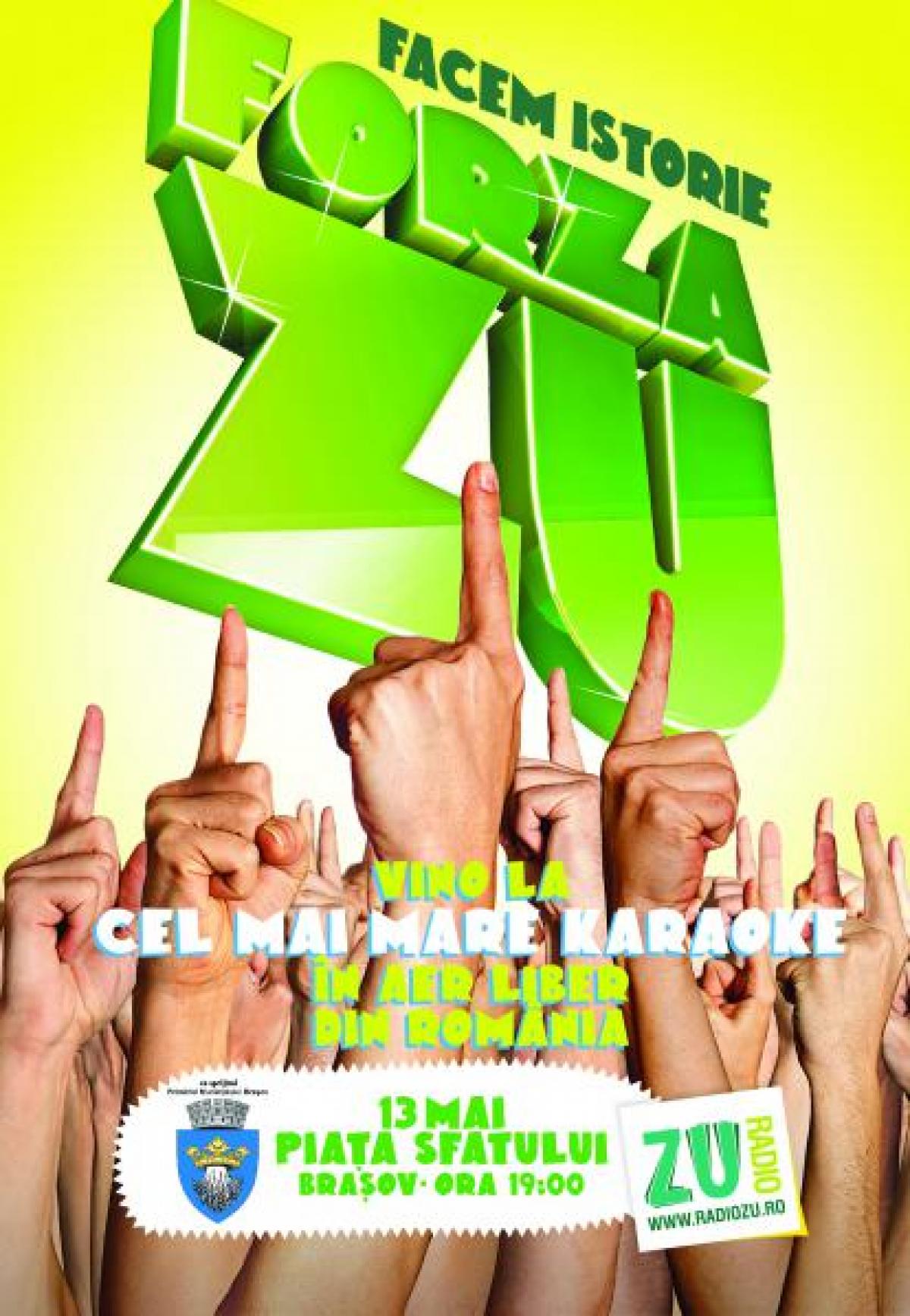 La sfarsit de saptamana, Brasovul va fi gazda unuia dintre cele mai mari evenimente marca Radio ZU. Daniel Buzdugan si Mihai Morar se simt in voce si sunt nerabdatori sa se intalneasca din nou cu ascultatorii lor. Punem accentul pe voce pentru ca vineri, 13 mai, ora 19:00, in Piata Sfatului din Brasov „explodeaza” Forza ZU, cel mai mare karaoke in aer liber din Romania.
