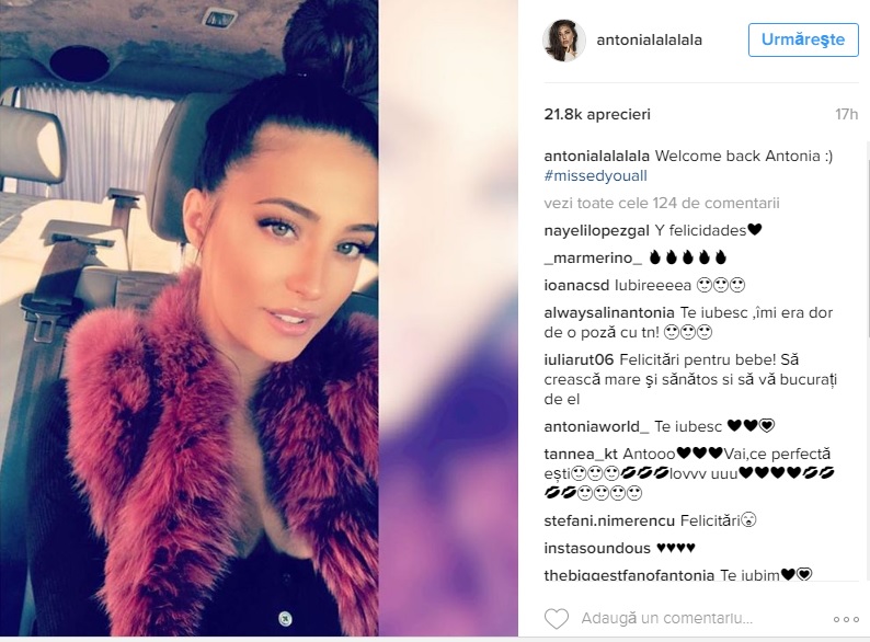 Fotografia a fost însoţită şi de un mesaj scurt şi cuprinzător "Bine ai revenit Antonia".