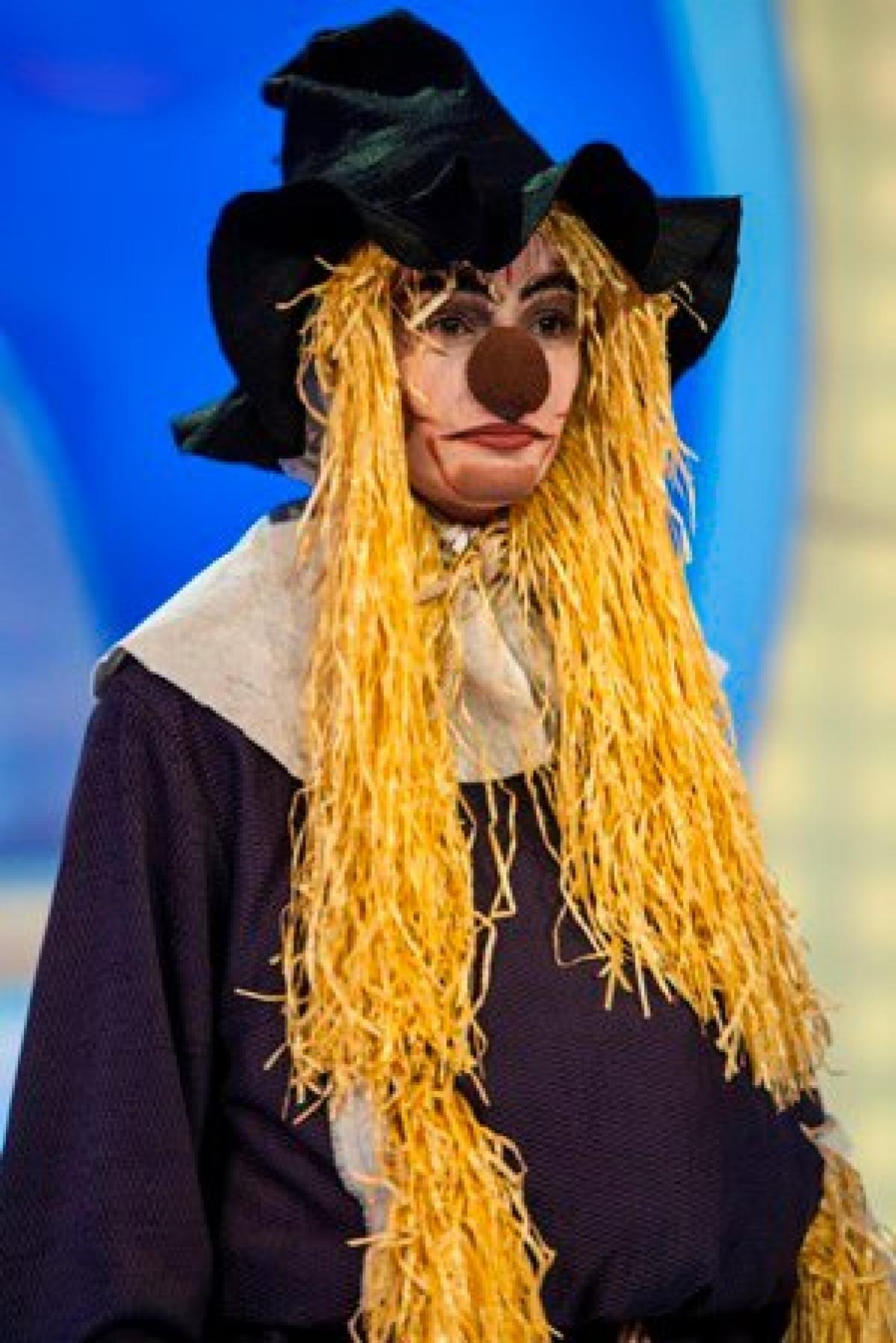 În costumul "Omului de paie" şi purtând un machiaj care să-i ascundă identitatea, această vedetă este aproape imposibil de recunoscut.