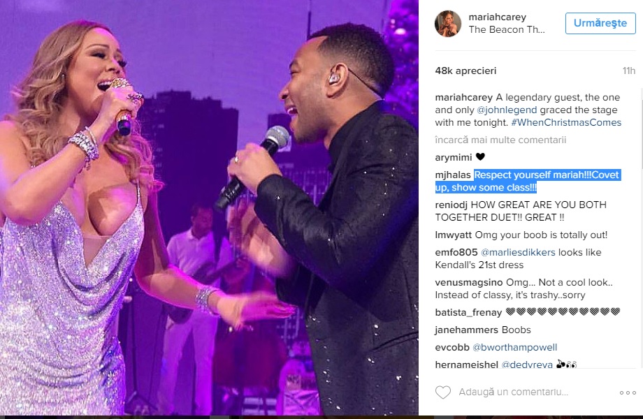 "Respectă-te, Mariah! Acoperă-te, trebuie să ai stil" sau "Ești frumoasă, nu trebuie să-ți arăți mereu sânii. Nu ești prea bătrână pentru asta? În plus, ai copii. Să fim serioși!", acestea sunt câteva dintre mesajele, pe care internauții i le-au lăsat vedetei.