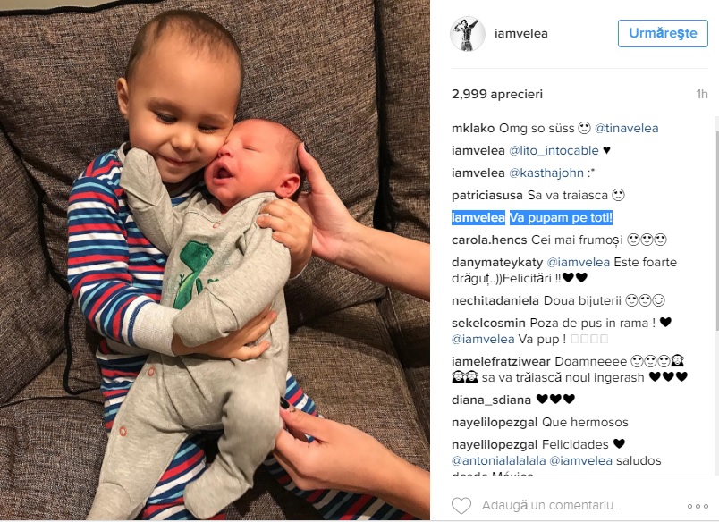 "Vă pupăm pe toți!", le-a răspuns fericitul tătic Alex Velea.