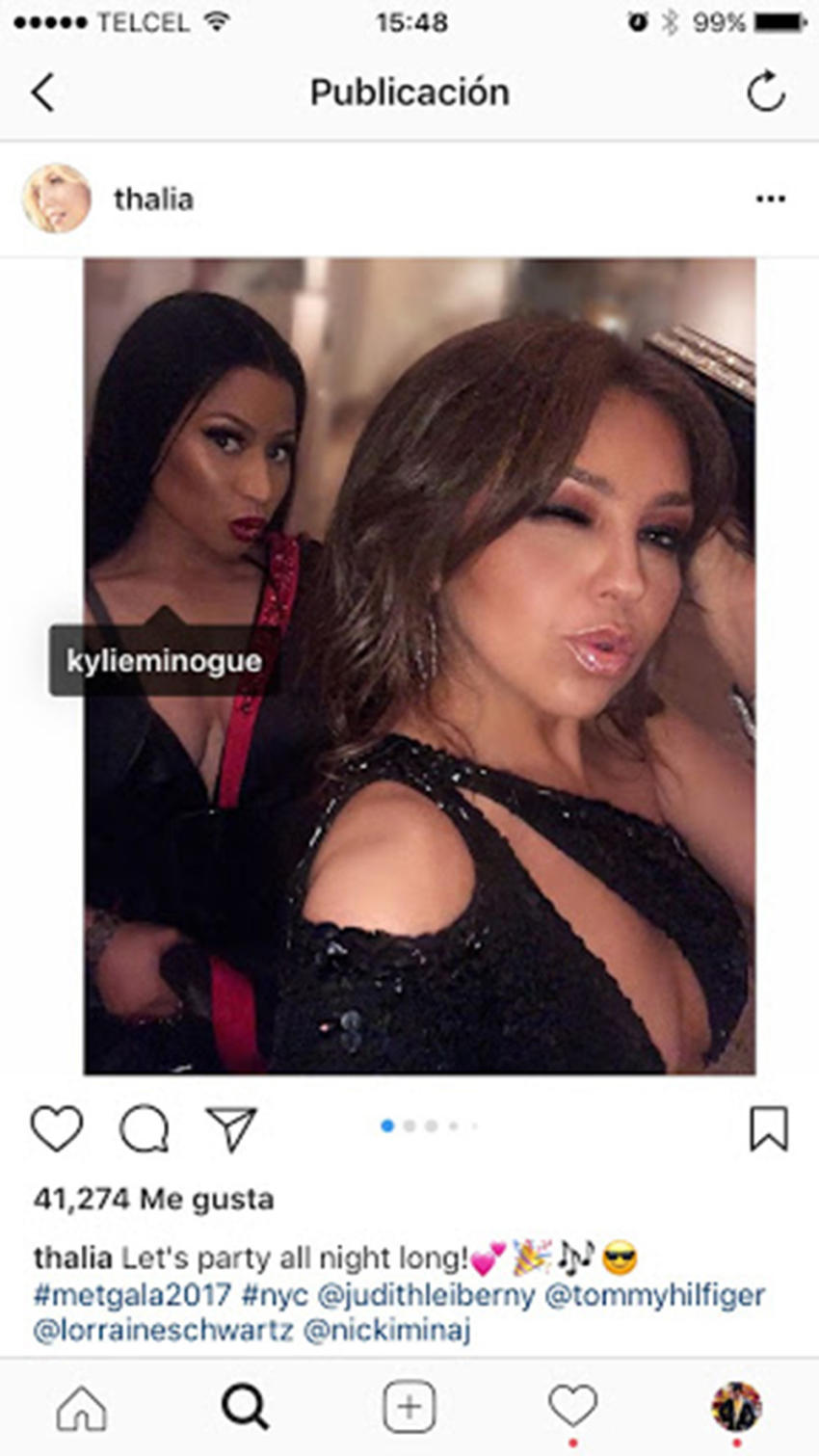 Însă gafele nu au ocolit-o nici pe ea. Într-o fotografie de la eveniment postată pe Instagram, cântăreaţa mexicană confundat-o pe...Nicki Minaj, care apărea pe fundal, cu australianca Kylie Minogue.