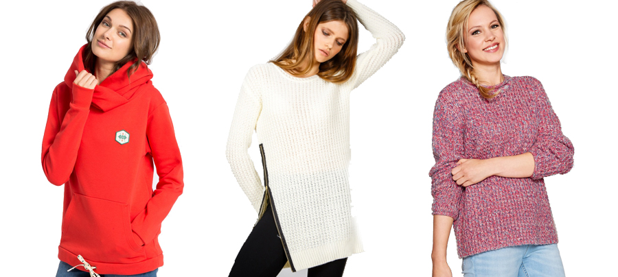 Alege între hanoracul roșu ”Samana” (296,90 lei), puloverul alb cu fermoar lateral (69,90 lei) sau puloverul roz tricotat (64,90 lei) și construiește cu ajutorul lor ținute casual perfecte pentru următoarea perioadă.