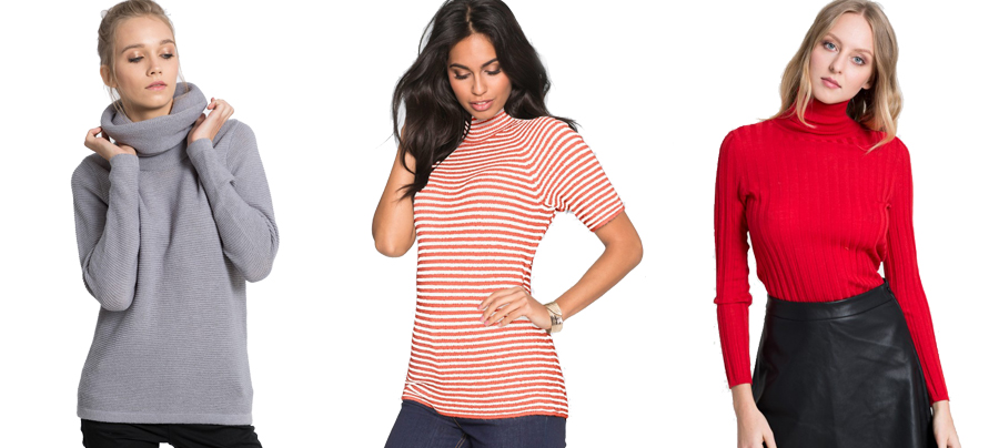 Dacă ești în căutarea unui look casual, încearcă puloverul gri cu guler larg (109,90 lei) sau puloverul dungat cu guler înalt (54,90 lei), iar pentru o ținută sexy și atrăgătoare, noi îți recomandăm puloverul roșu ”Tommy Hilfiger” (649,90 lei).