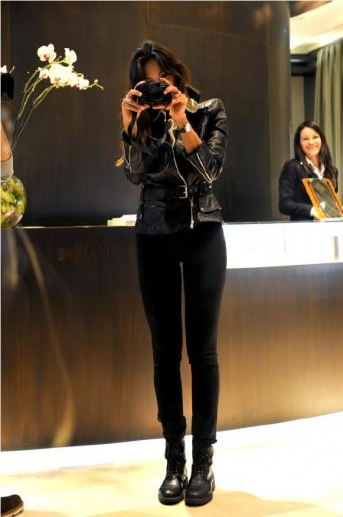 Romanca nu a fost deranjata de prezenta paparazzilor la "eveniment"; mai mult, ea a inversat rolurile si a inceput sa le faca poze.