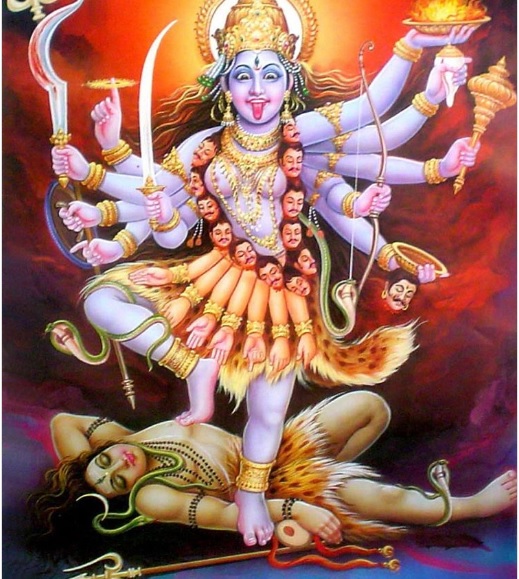 Kali este zeița hindusă a distrugerii, iar imaginea postată de Perry o înfățișează purtând un colier de cranii cu câte o armă în fiecare dintre cele 10 brațe, avându-l la picioare pe soțul ei, zeul Shiva.