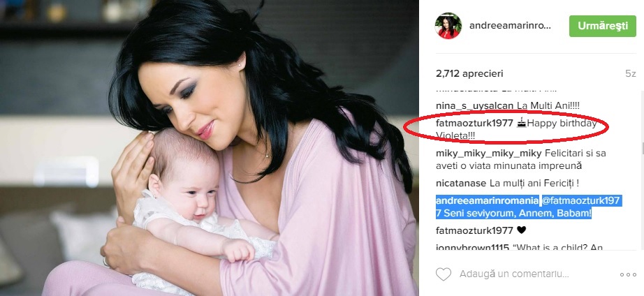 Nu a ratat ocazia nici mama lui Tuncay Ozturk, care s-a limitat la a scrie clasicul "la mulți ani". Andreea Marin i-a răspuns la felicitare printr-un mesaj incredibil.