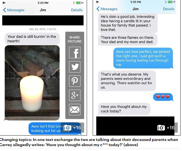 Aşa cum a promis, fostul soţ al iubitei lui Jim Carrey, cea care s-a sinucis în vara acestui an, a scos iveală mesajele pe telefon, trimise de Jim Carrey către Cahriona White, în care îi cerea în mod insistent să ia "pastila de a doua zi" pentru a evita o potenţială sarcină nedorită.