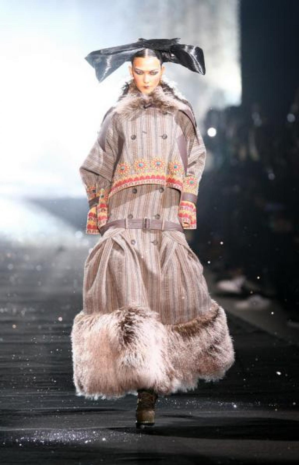 "Totul a pornit de la miresele fecioare din Ucraina. Am vrut sa revin la originile lui Galliano, la acea poezie, la acel romantism. Am vrut ca modelele sa arate ca si cum merg prin furtuna", a spus designerul pentru emisiunea Videofashion.