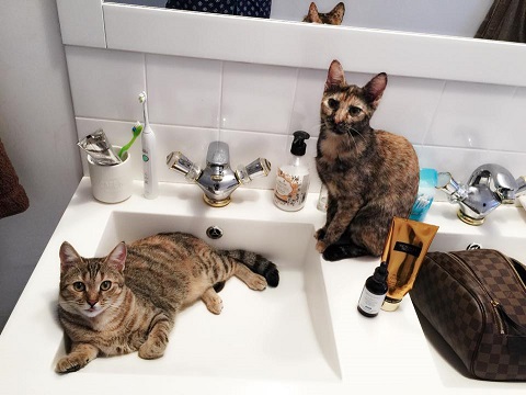 De dimineaţă, vedeta a postat surpriza de care a a avut parte când a mers la toaletă, pentru ritualul zilnic. În chivetă, o aşteptau cele două pisicuşe ale sale, Fifi şi Coco.