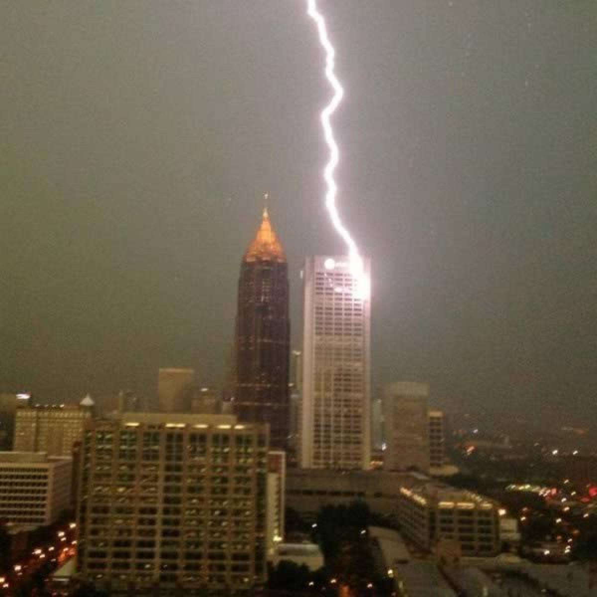 Pasionații de fotografie nu s-au speriat de furia naturii dezlănțuită și au surprins în imagini momentele în care fulgerele atingeau clădirile și apoi intrau în pământ.
