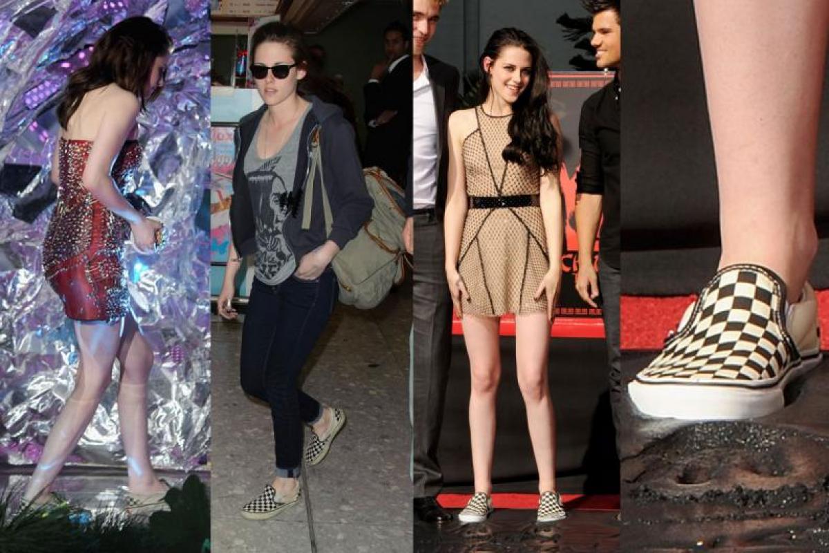 Pe covorul rosu, la sedinte foto, la gale si decernari de premii, pe strada , in calatorii, la concerte sau festivaluri, actrita etaleaza o adevarata colectie de pantofi sport Vans. Imbracata intr-o rochie de la Marios Schwab, Kristen a pasit pe Walk of Fame, incaltata intr-o pereche de espadrile cu model cadrilat Vans Slip-On, renuntand la pantofii stiletto cu toc inalt, pe care ii alesese initial pentru aceasta ocazie. Optiunea vestimentara a vedetei a fost indelung comentata, dar stilistii americani si revistele de moda au ajuns la concluzia ca acesta este stilul lui Kristen: confortabil si relaxat!