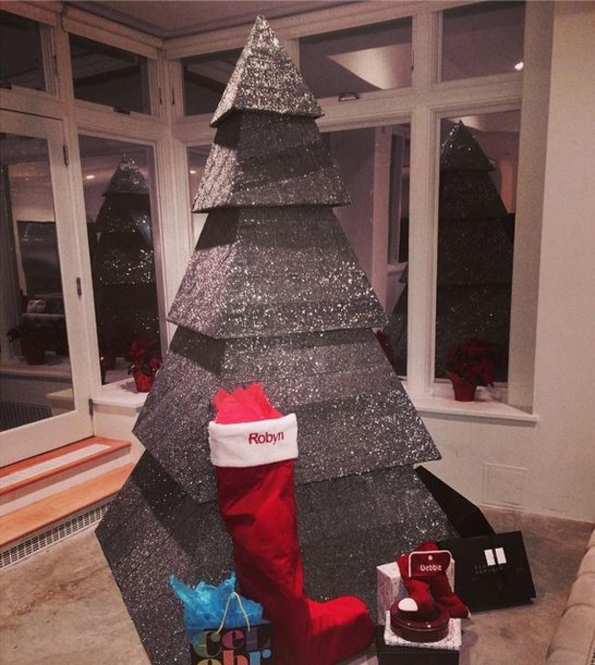 Cântăreața nu s-a mai chinuit să împodobească vreun brad sau să treacă prin dilema anuală - natural sau artificial? - ci a ales un pom.. geometric. Negru cu sclipiri de gheață, pomul a trezit mai multe întrebări decât like-uri.