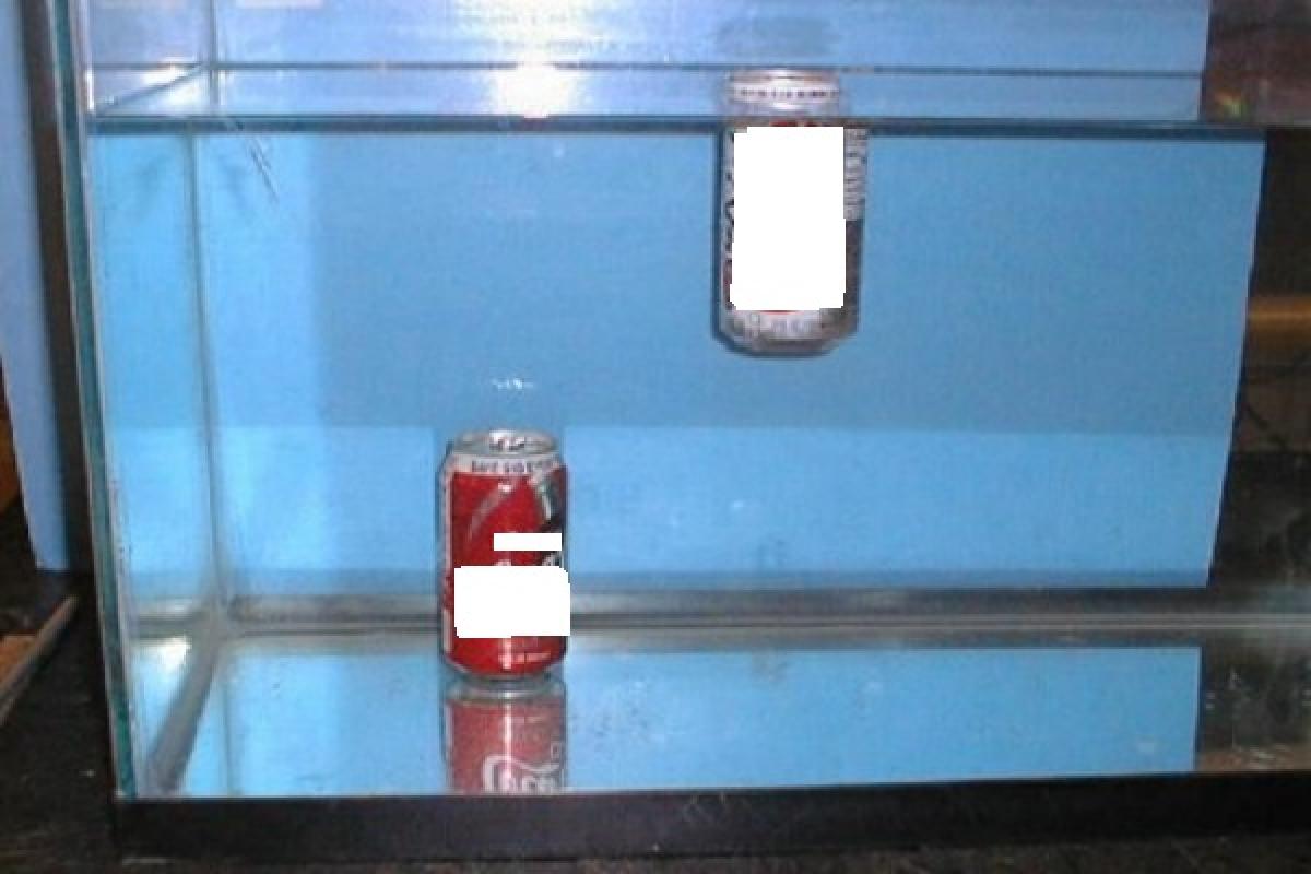 Este straniu și hazliu în același timp! Dacă pui o doză de băutură carbogazoasă într-un recipient cu apă, aceasta se scufundă. Dacă pui o doză de băutură dietetic, aceasta va pluti.