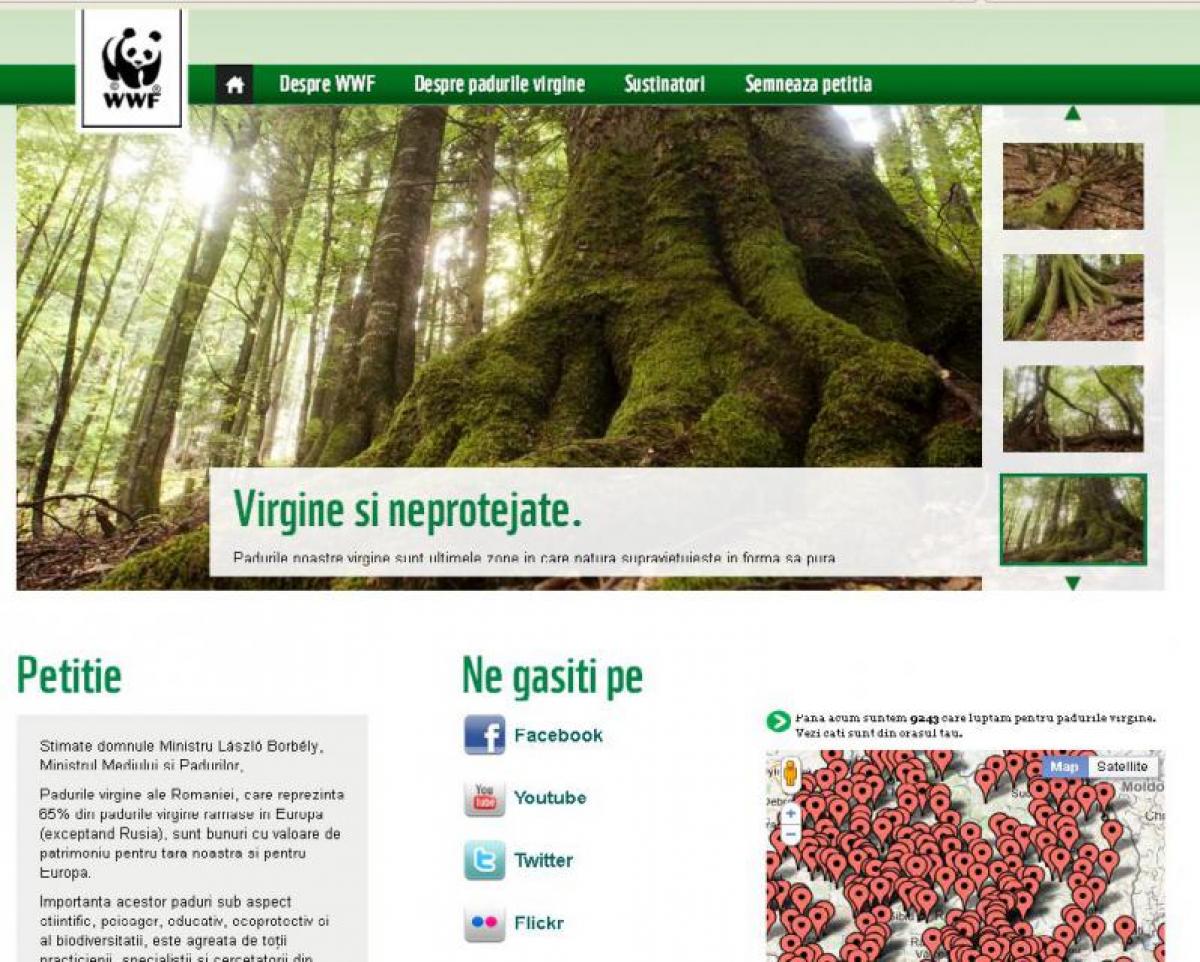 WWF a inaintat o scrisoare Ministerului Mediului si Padurilor, prin caresolicita „luarea unor masuri urgente pentru protejarea eficienta aultimelor paduri virgine ale Romaniei, respectiv asigurarea cadrului legislativ pentru protectia lor si asigurarea de fonduri pentru plati compensatorii catre proprietarii privati de padure”. Antena 3 se alatura acestui demers si ii invita pe toti cei care doresc sa se implice, sa semneze pe site-ul www.padurivirgine.ro petitia ce poate determina schimbarea legislatiei.