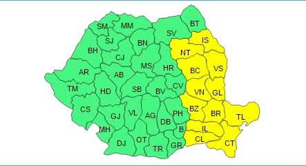 Potrivit Administrației Naționale de Meteorologie (ANM), intră în vigoare un cod galben în intervalul 06 ianuarie, ora 20 – 07 ianuarie, ora 10, în Dobrogea, Bărăgan și în cea mai mare parte a Moldovei va ninge moderat cantitativ, vântul va continua să prezinte intensificări cu viteze de 50…55 km/h și pe arii restrânse 70 km/h, temporar viscolind şi spulberând zăpada.