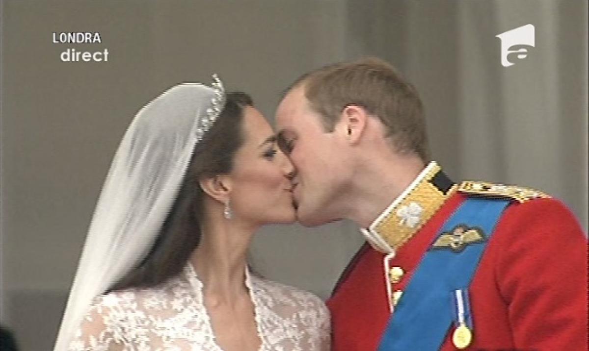 Printul William si mireasa lui s-au sarutat de trei ori!