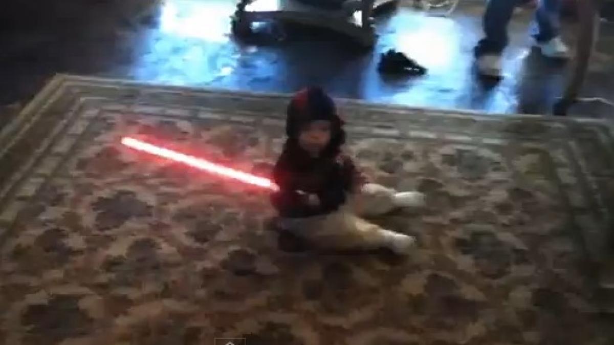 Darth Vader a incercat sa cucereasca galaxia, pe cand Darth Baby va cuceri inimile tuturor internautilor. Copilasul din urmatorul clip manuieste periculos sabia laser, ca un mic ucenic Padawan - in hanorac cu gluga: