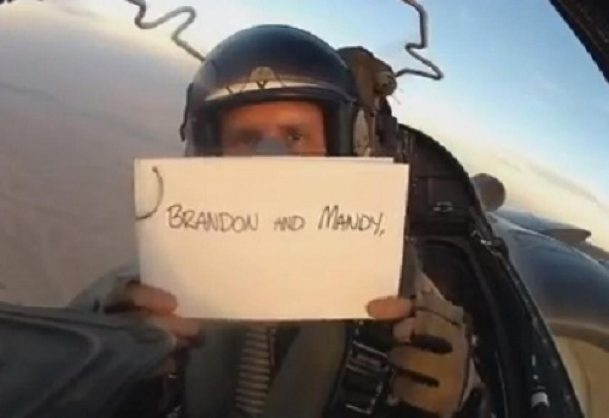 Soldatul a filmat un mesaj scris in locul discursului asteptat de cei prezenti, la bordul avionului de lupta. Apoi, i-a trimis inregistrarea fratelui si a sosit la momentul perfect. "Toti cei prezenti au plans sau au ramas fara cuvinte in timp ce au urmarit clipul. A fost un moment emotionant pentru toti", a spus mirele pentru Reddit.