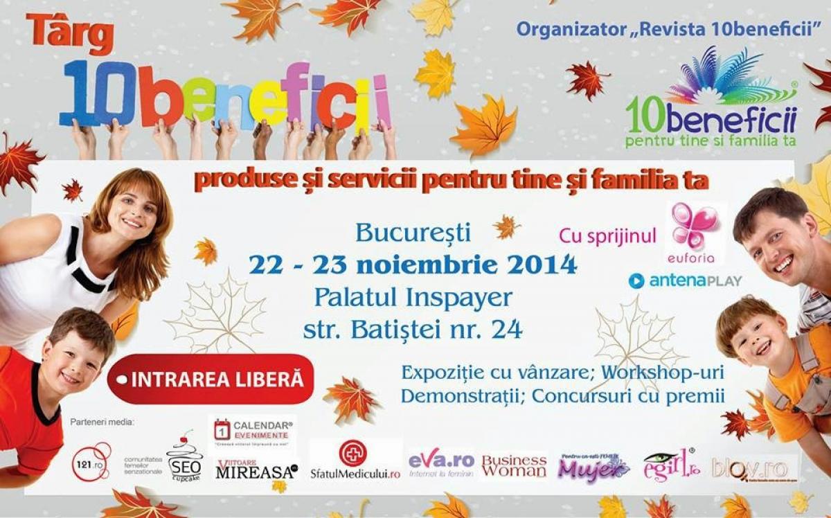 Tot ce are nevoie familia ta, la Târgul 10 beneficii! Pe 22-23 noiembrie, aici găsești produse sănătoase și workshop-uri interesante!