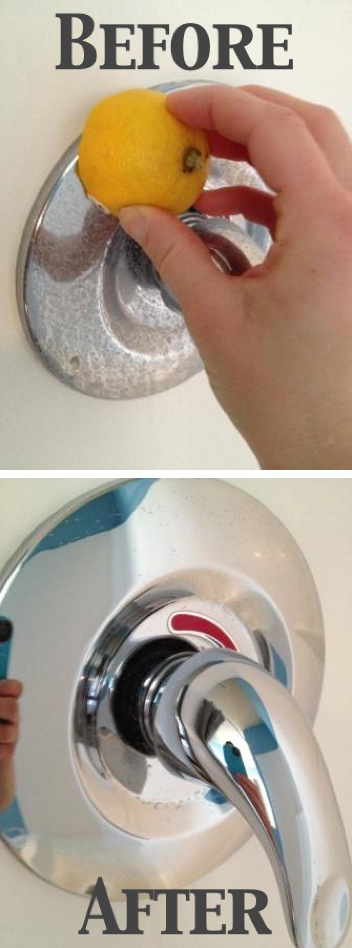 Ai nevoie doar de o lămâie pe care să o tai în jumătate și poți începe treaba. Freacă cu lămâia locul pătat de apă dură și lasă zeama ce curge din ea să acționeze câteva minute. Apoi va trebui doar să mai clătești cu apă călduță și gata!