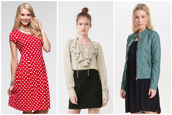 Investește câțiva bani în rochia roșie cu buline (74,90 lei), bluza cu volane (169,90 lei) și jacheta din piele sintetică (149 lei), iar prietenii te vor complimenta pentru un look impecabil.