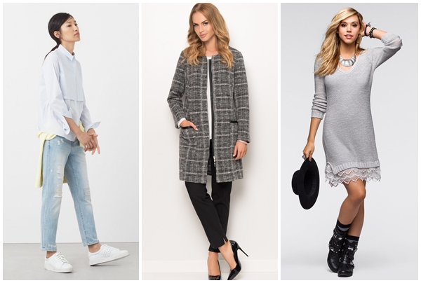 Jeanșii Mango Cigar (169,90 lei), rochia gri din tricot (179,90 lei) și jacheta lungă cu fermoar (239,20 lei) sunt câteva dintre obiectele vestimentare pe care orice femeie cu siluetă în formă de măr trebuie să le dețină.